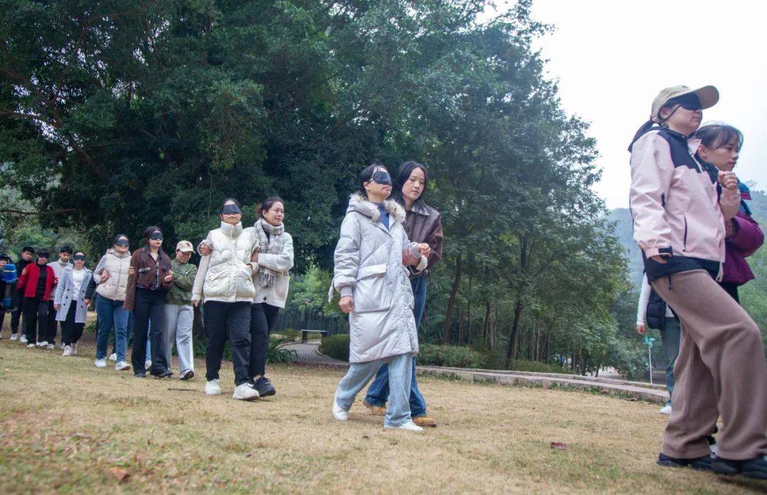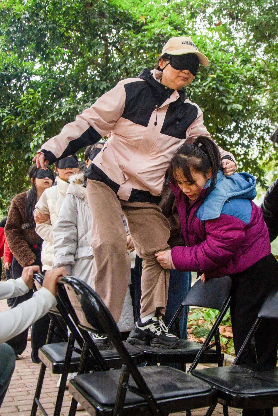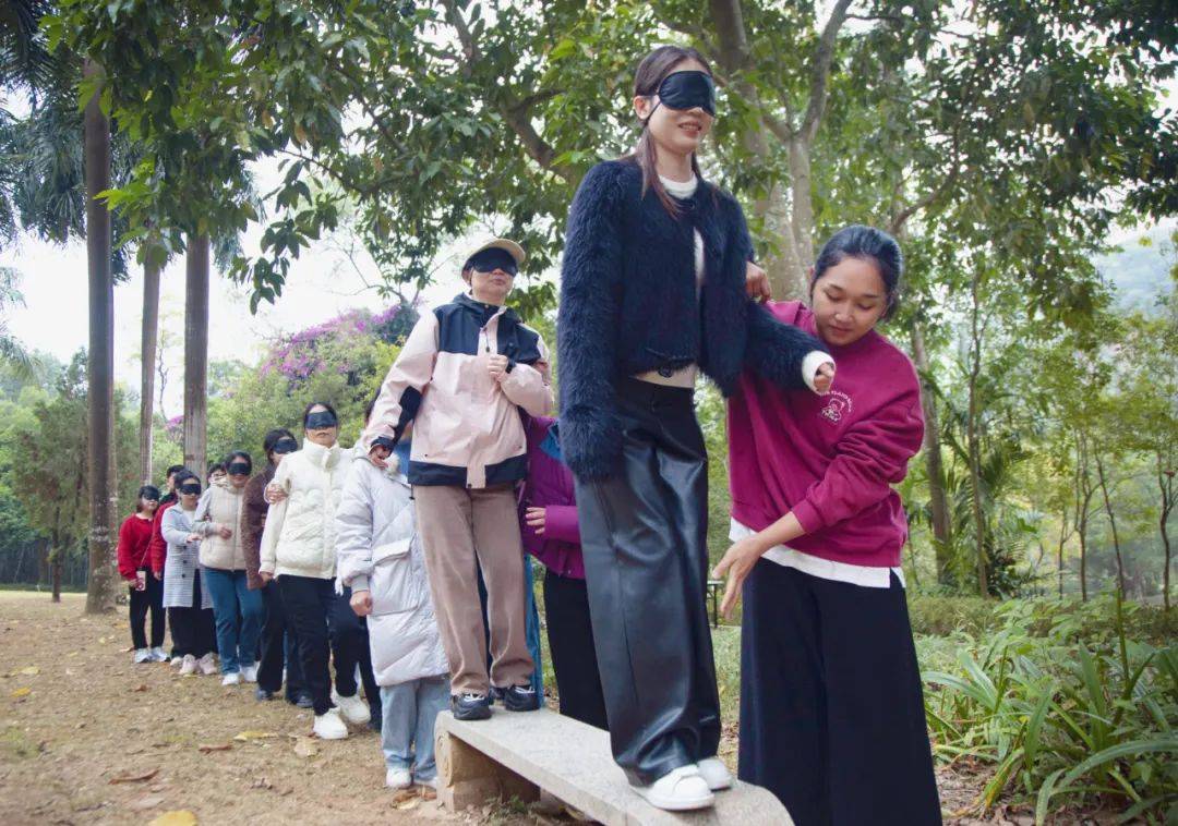 而將活動推向高潮的,無疑是“風(fēng)雨人生路”這一特別環(huán)節(jié)。隨機(jī)配對的員工,一人蒙眼扮演“盲人”,一人禁聲扮演“引路人”,攜手并肩穿越精心設(shè)計(jì)的模擬“風(fēng)雨人生旅程”。