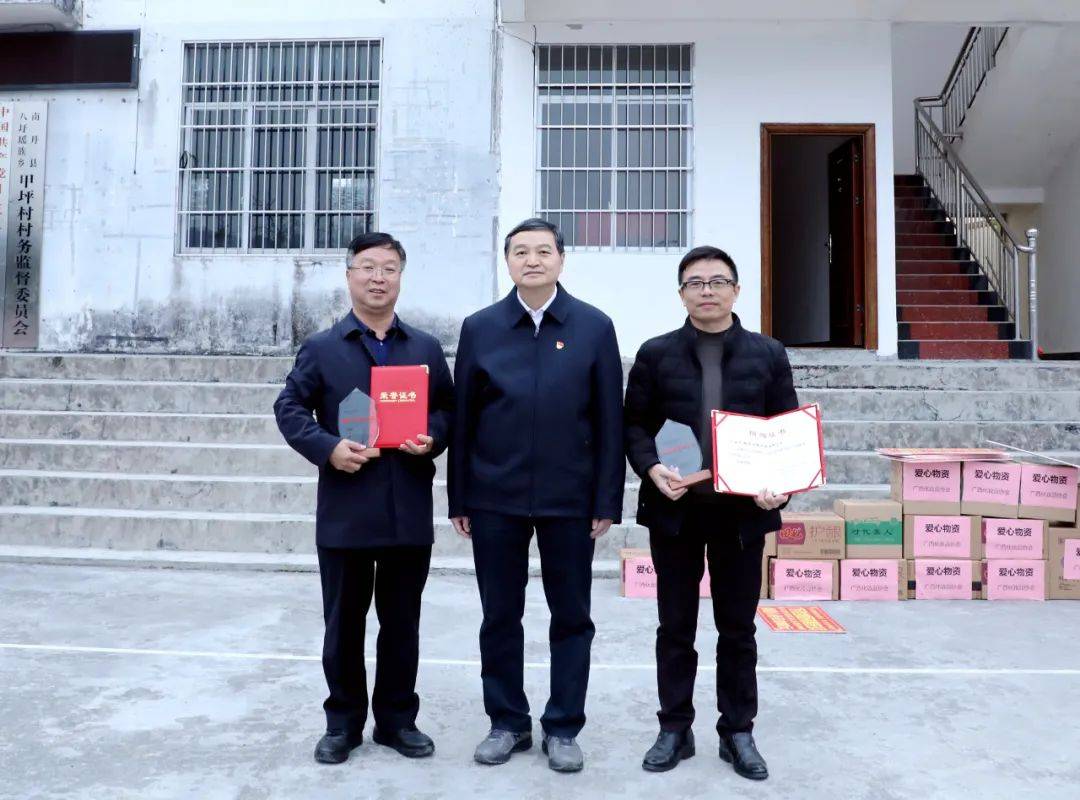 會議結束后,全體人員前往甲坪村開展愛心捐贈活動。在捐贈儀式上,隨行所有企業向甲坪村捐贈了一批急需的物資,并參與了部分基礎設施的修繕工作,改善當地基礎設施、提升村民生活品質。