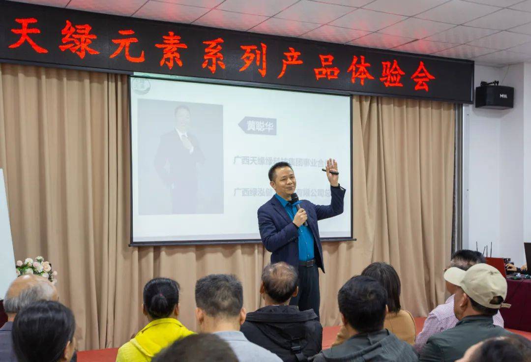 廣西天緣綠科技集團事業合伙人、廣西綠泓健康管理有限公司總經理黃聰華老師作為主講嘉賓,為在場的市民帶來了一場精彩的產品分享會。黃聰華老師從主研產品天綠元素的起源、研發歷程、科學原理及其在實際應用中的表現等多個維度,全面而細致地介紹了天綠元素及其系列產品,讓在場的每一位市民都對天綠元素系列產品有了更加清晰和深刻的認識。