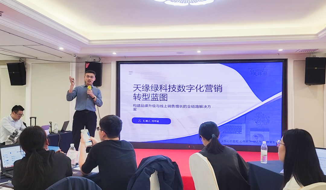 在兩天密集培訓中,天緣綠團隊深度參與各環節學習研討,積極與專家和同行交流互動。在成果路演環節,團隊結合大健康產業特點和企業實際,提交的《天緣綠科技數字化營銷轉型藍圖--構建品牌升級與線上銷售增長的全鏈路解決方案》獲得專家一致好評,展現了團隊優異的學習轉化能力和戰略視野。