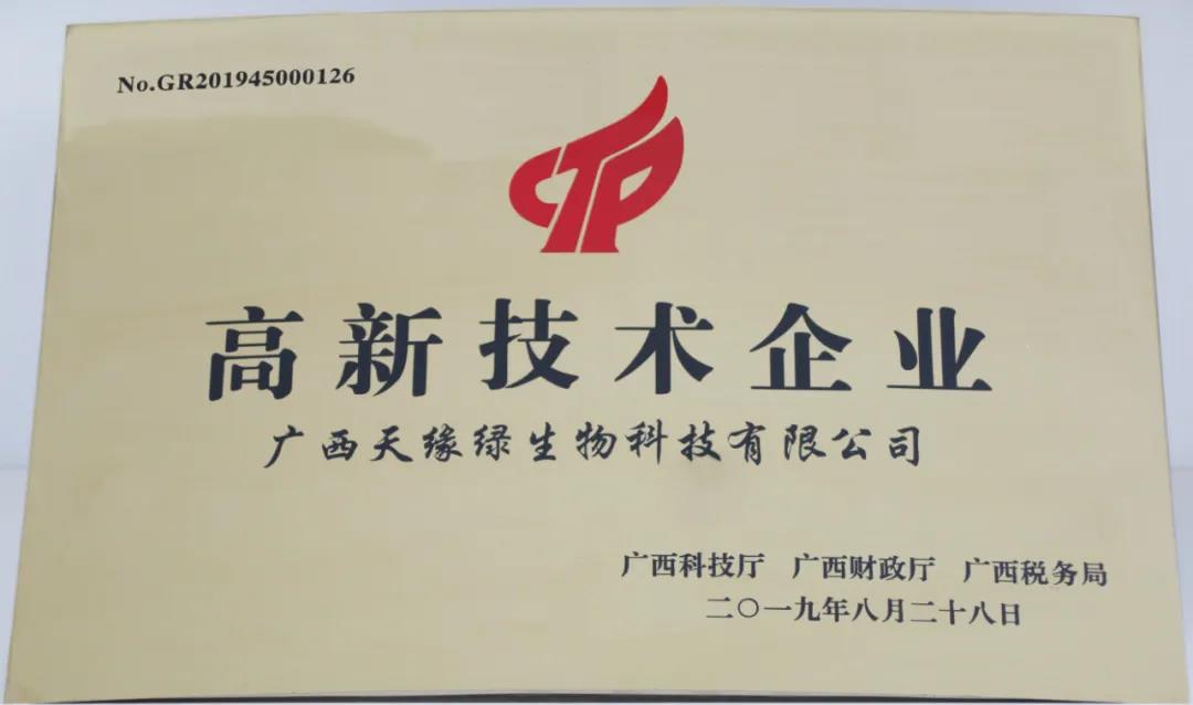 2022年10月,廣西天緣綠生物科技有限公司再次通過“國家高新技術企業(yè)”認定